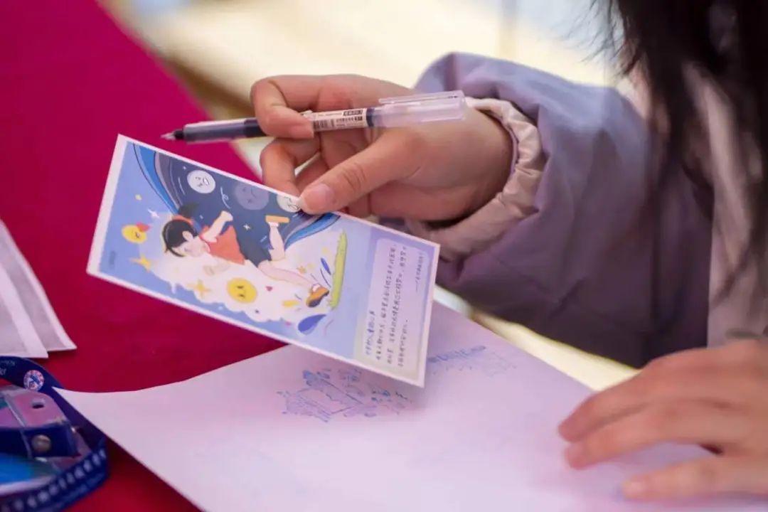 志愿者们准备了“蓝信封”主题的精美明信片,号召有爱心的同学现场为乡村留守儿童写下关爱、送上祝福,助力孩子们健康快乐成长。同时,志愿者们为送上祝福的朋友赠送花卉种子,感谢他们种下了春天,种下希望,种下对雷锋精神的传承。据统计,活动期间收集了93张卡片,未来将带着同学们的美好祝愿走进大山深处。