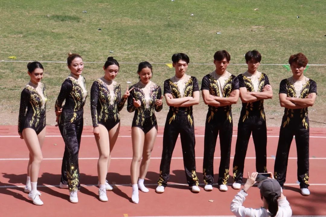 我院参赛项目包括生物2301班贾梓硕带来的单人项目《竞技健美操规定套路》、生物2301班吴腾带来的单人项目《自编竞技健美操》,学生团体自选动作《全国街舞啦啦操二级》、学生团体规定动作《上春山》花球啦啦操以及教职工参赛队员带来的《上春山》自编曲目。随着激昂欢快的旋律,参赛队员动作协调、节奏同步,于起伏律动之中洋溢活力,有力彰显出参赛师生热情饱满、阳光自信的昂扬姿态。最终经过激烈地角逐,学院参赛队伍斩获多项奖项。精彩表现的背后是参赛师生日复一日的刻苦训练,他们反复打磨每一个动作,耐心纠正每一处失误,努力展现最完美的表演。