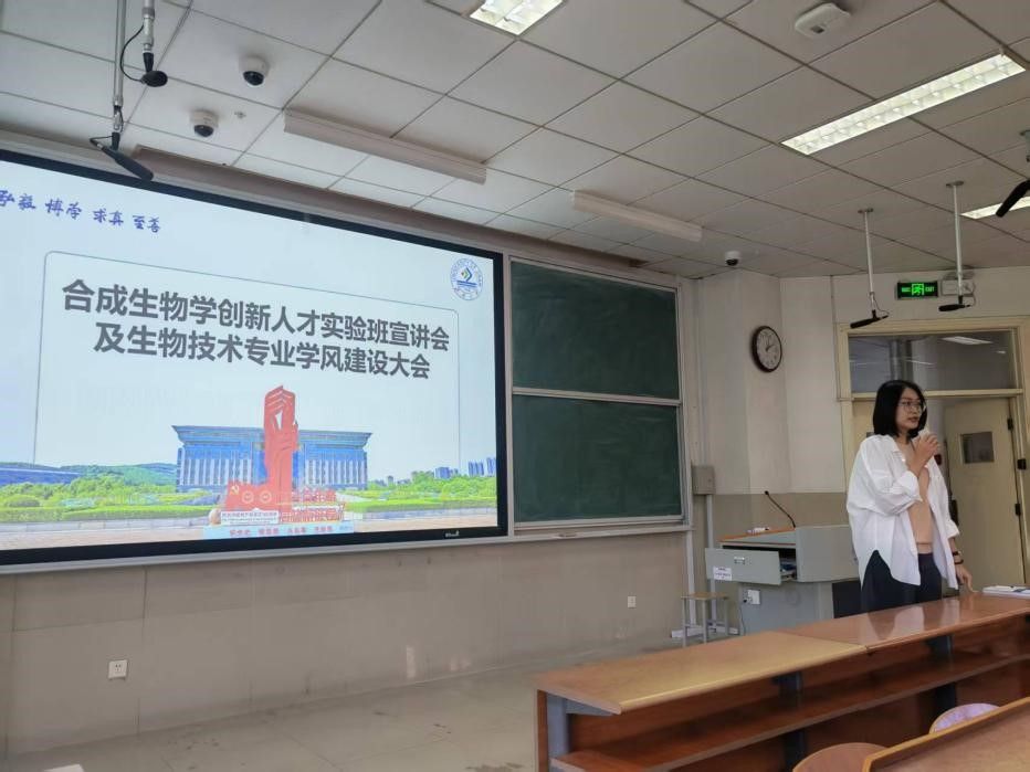 为进一步加强学风建设,推动拔尖创新人才培养,激发学生科研热情,4月28日,今年会jinnianhuicom举办合成生物学创新人才实验班(以下简称“创新班”)宣讲会暨生物技术专业学风建设大会。学院教工第二党支部成员、生物技术专业相关负责教师,2024级全体学生参加活动。活动由2024级本科生辅导员冯昕主持。
