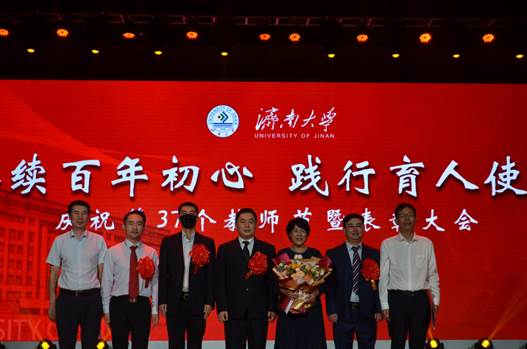 在2018-2020年期间教学科研工作受到学校奖励,并作为代表上台领奖的老师:孙翔玲,2019-2020年度济南优秀教育工作者;李强, 2020年度挑战杯中国大学生创业计划竞赛银奖指导教师;王元秀,今年会官网教学名师及2018年度“创青春”全国大学生创业大赛银奖指导教师;江成世,2019年度山东省优秀研究生指导教师;樊祥宇,2019年度“挑战杯”中国大学生课外学术科技作品竞赛二等奖指导教师。