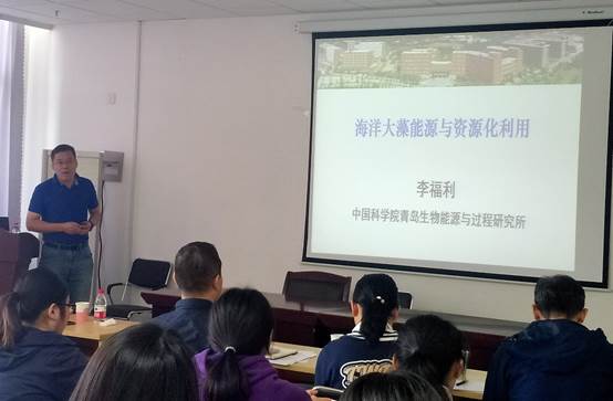 吕雪峰副所长首先介绍了中国科学院青岛能源与过程研究所的发展定位以及学科分布和科研现状,然后作题为“微生物生物合成技术与绿色生物制造”报告,以螺旋藻规模培养制备甘油葡萄糖苷、蓝细菌高温高光逆境适应机制的解析与优化、植物源杀虫剂大黄素甲醚的微生物合成、蒽醌类天然产物开环新机制等研究展现了基础研究和应用研究有机融合;徐健主任作了题为“拉曼组学(Ramanomics):从原理到仪器”的报告,创造性的提出了拉曼组作为细胞群体/群落功能快速探测新手段的新视角;李福山组长作题为“海洋大藻能源与资源化利用”报告,从嗜热微生物资源的挖掘、多糖裂解酶热适应、热稳定性机制的解析、酶法制备海藻寡糖工艺等方面介绍了在海洋大藻开发利用方面所做的研究工作;姚礼山组长作题为“蛋白质相互作用检测与计算模拟”的报告,从盐键的温度依赖性机制、蛋白质氢键协同性检测等方面展现了在蛋白质相互作用检测与计算模拟方面的研究工作。报告结束后专家与参会老师和同学就报告中涉及的研究进行了深入交流探讨,现场气氛热烈,与会教师和研究生收获良多。