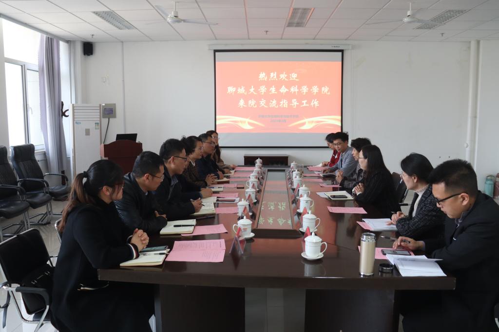 3月29日,聊城大学生命科学学院党委副书记、副院长李晓鹏一行8人来今年会jinnianhuicom开展调研交流活动。学院班子成员、教师代表、学生工作人员参加座谈交流。会议由学院党委副书记、副院长武芳主持。
