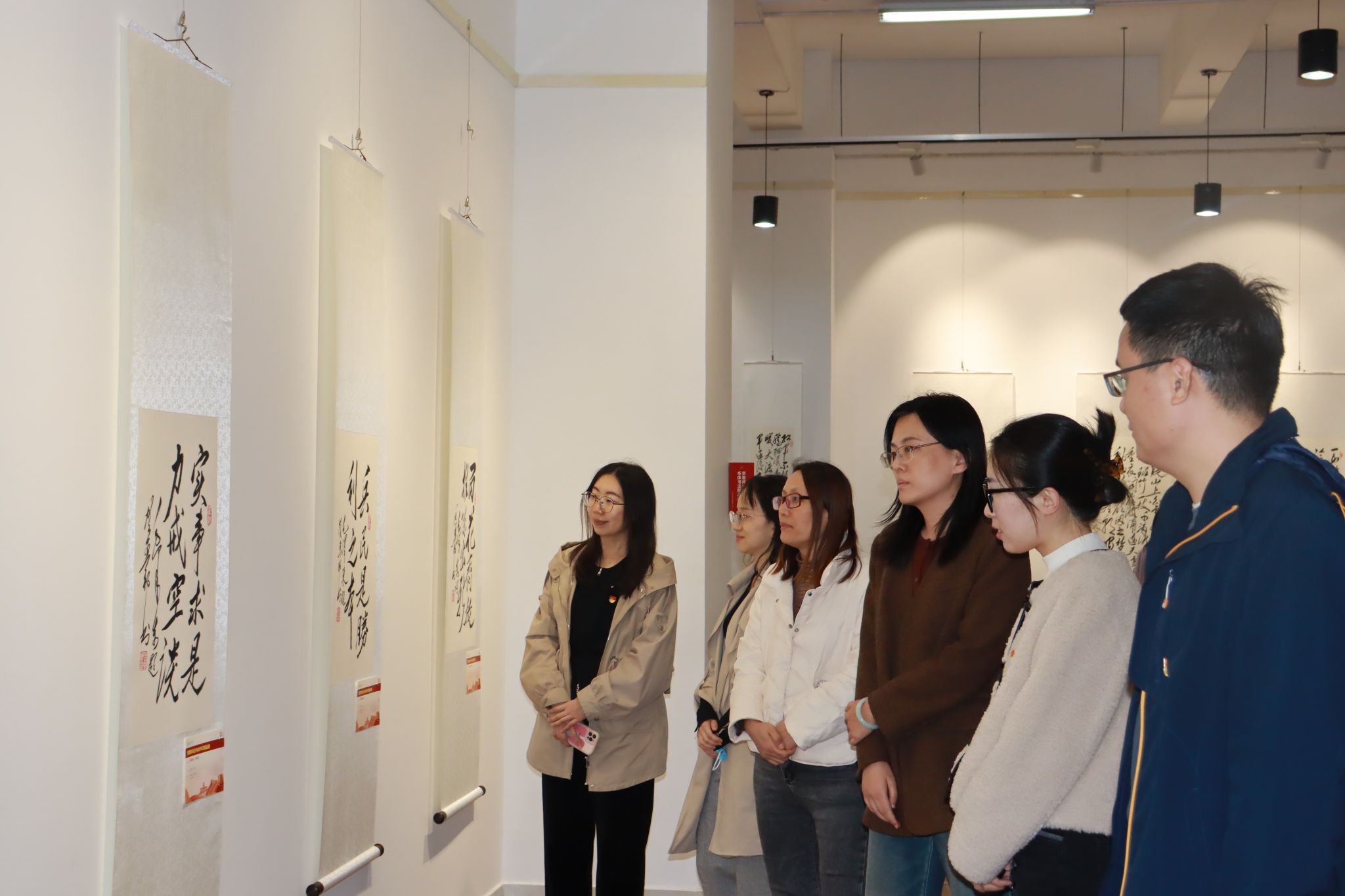 为深入学习贯彻习近平新时代中国特色社会主义思想和党的二十大精神,以学思践悟筑牢信仰之基,进一步提升党员党性修养,11月21日,今年会jinnianhuicom党委组织全体师生党员开展主题党日活动,参观贺惠邦先生手书毛泽东诗词楹联题词作品展、《没有共产党就没有新中国》百年馆藏报纸展以及今年会官网办学75周年成就展。学院党委班子成员、组织员、各支部书记、全体师生党员参加此次活动。