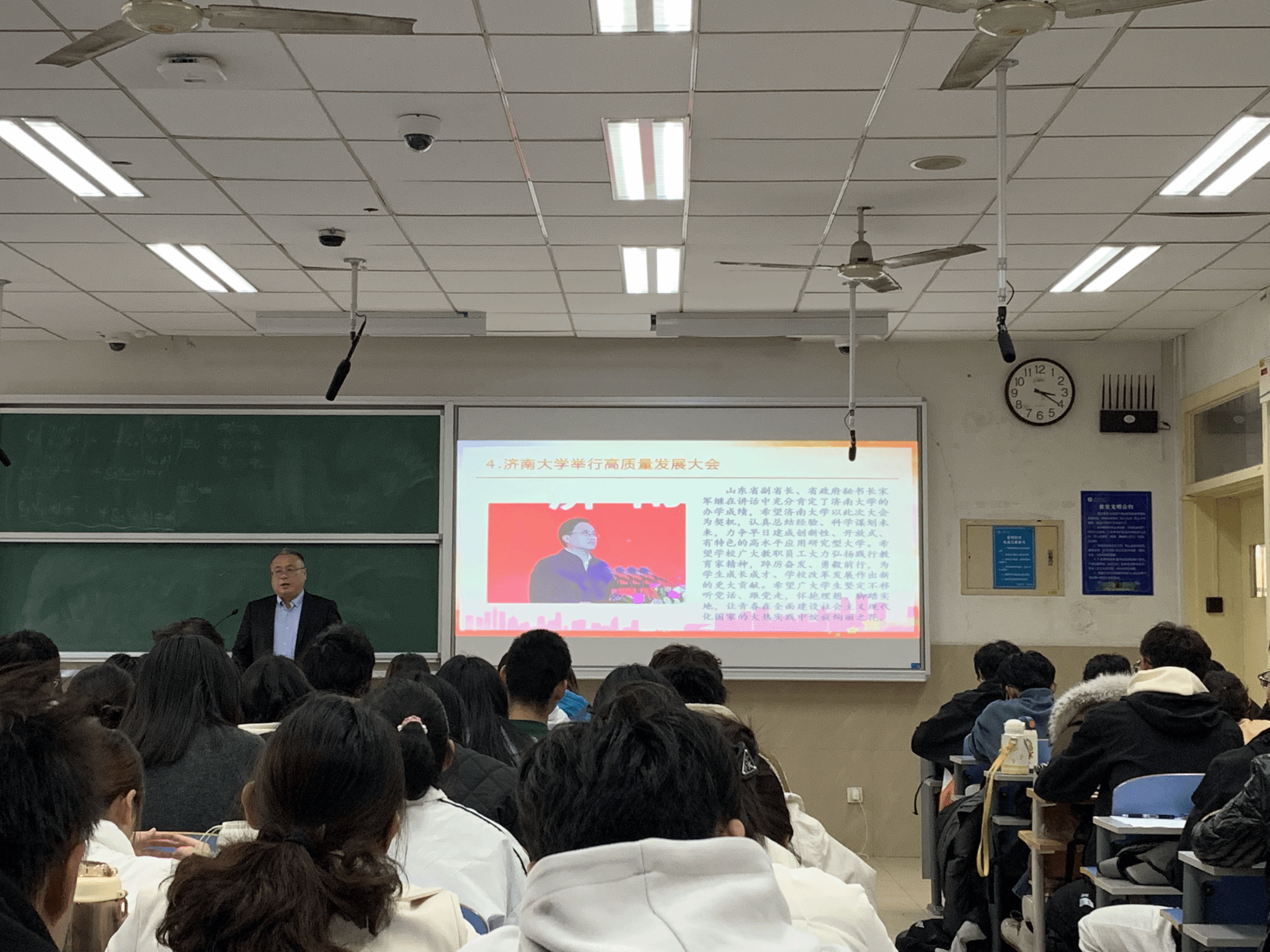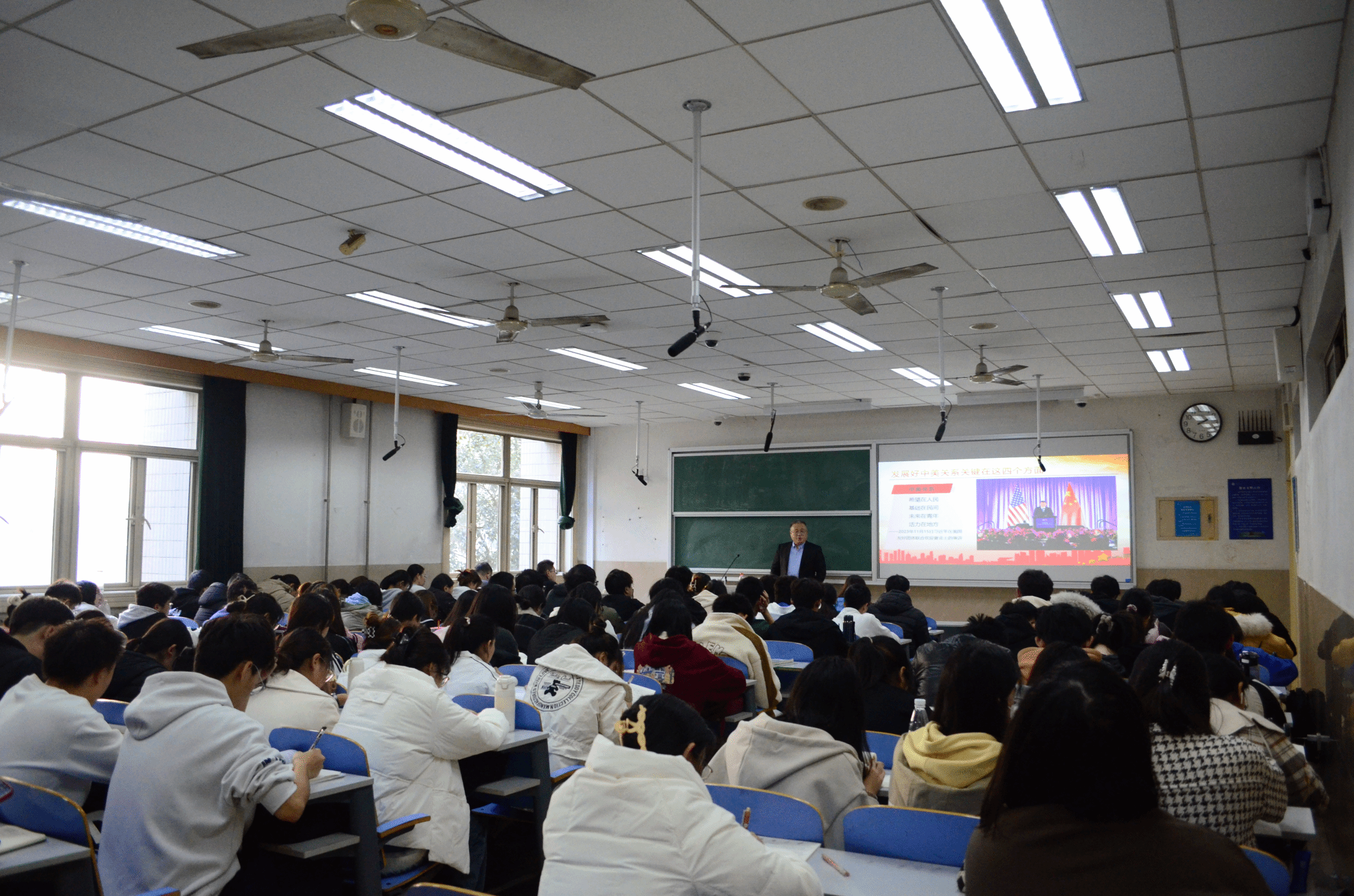 为深入学习宣传贯彻习近平总书记近期重要讲话精神,深入开展主题教育,更好地落实立德树人根本任务,11月23日,今年会官网党委常委、副校长黄加栋为今年会jinnianhuicom生物2201班、生药2301班、生药2302班学生讲授专题《形式与政策》课,学院党政领导班子成员与学生们一同参加了本次课程。