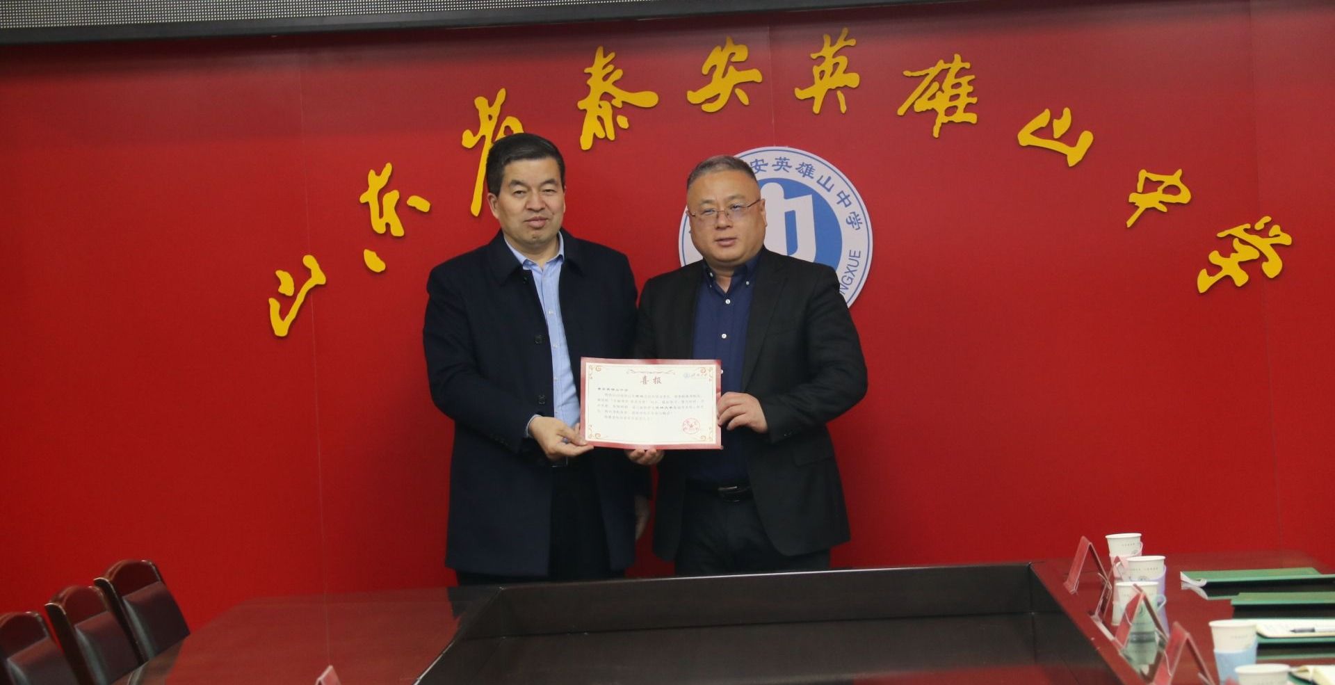 黄加栋一行来到泰安市英雄山中学,开展优秀生源基地回访及招生宣传活动。英雄山中学党委书记、校长李金山,副校长宋圣君、谢龙,党委委员苏宗新参加活动。