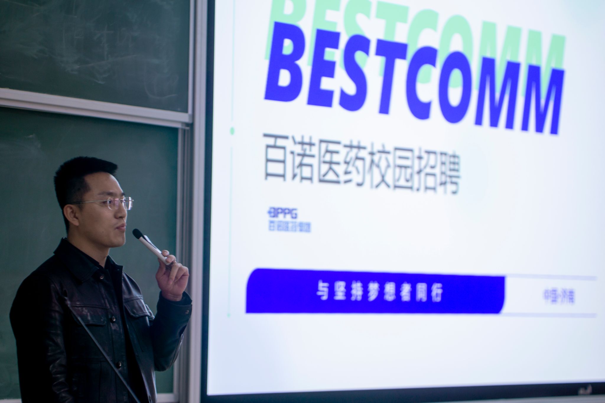 会议第二阶段为企业招聘宣讲。学院邀请鲁南制药集团股份有限公司、山东百诺医药股份有限公司、山东京卫制药有限公司、山东佰萃生特殊医学用途配方食品有限公司相关负责人进行招聘宣讲,有效增进了毕业生对业内不同领域岗位的认识,帮助毕业生精准定位。宣讲会后,毕业生主动与用人单位沟通交流,达成了初步就业意向。