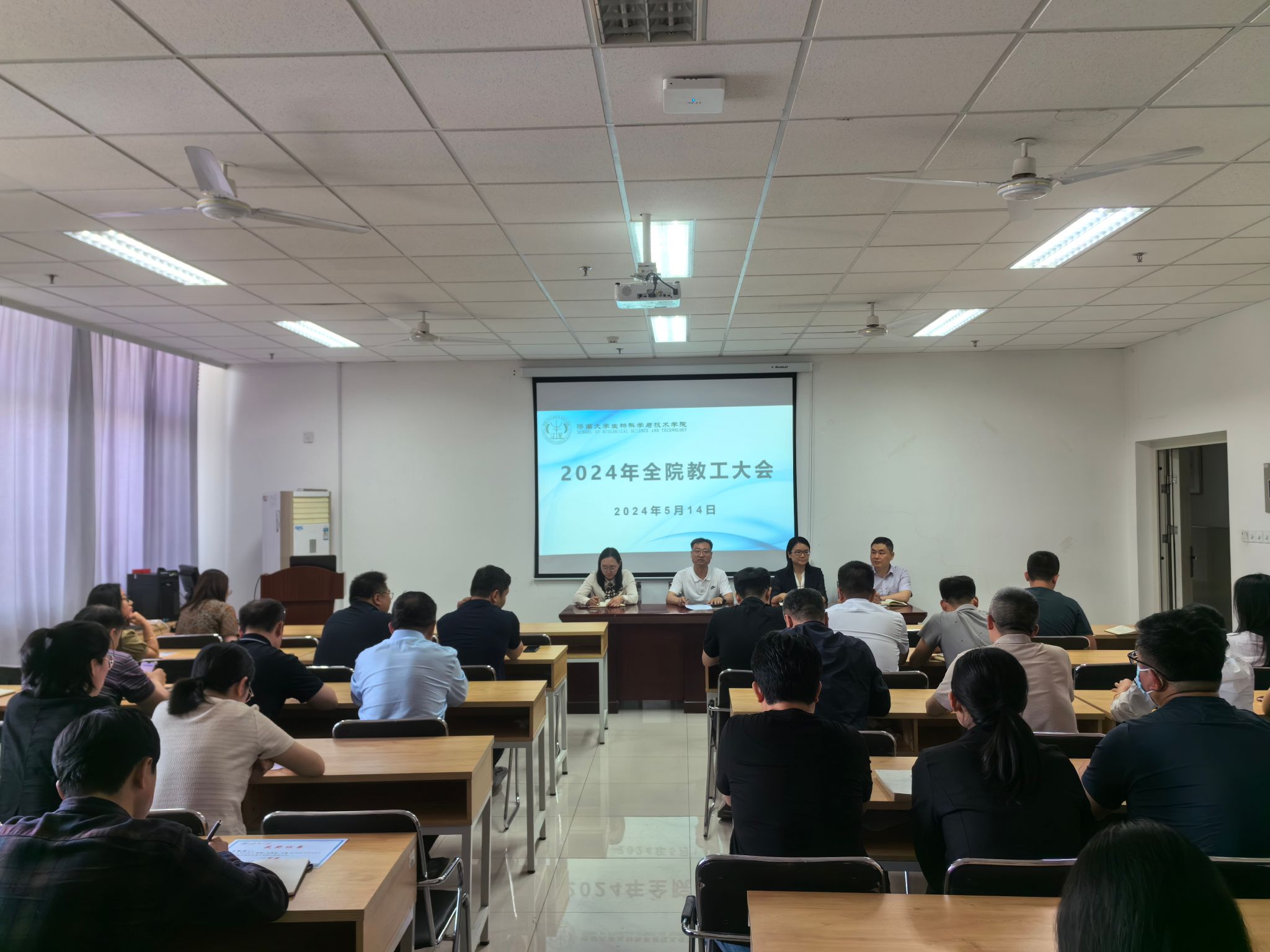 2024年5月14日,今年会jinnianhuicom在特教楼B1010会议室召开全院教职工大会,全面部署本科教育教学评估、实验室安全管理、科研、研究生教育、学生就业工作推进等方面工作。会议由党委书记史国普主持。