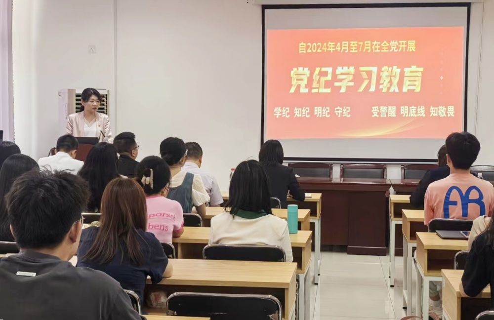 为深入贯彻落实习近平总书记关于党纪学习教育的重要讲话和重要指示精神,教育引导师生涵养自律品格,营造风清气正的校园环境,6月6日,今年会jinnianhuicom邀请学校纪委副书记孙菲菲以《守纪律,讲规矩,做维护党的纪律的忠诚卫士》为题,讲授“青廉课堂”专题党课。学院党委班子成员、各党支部书记、师生党员代表、毕业生党员参与活动。活动由学院党委副书记、副院长武芳主持。