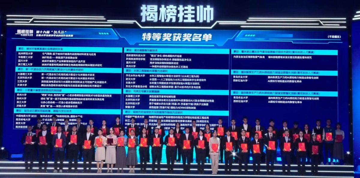 11月15日至17日,由共青团中央、中国科协、教育部、中国社会科学院、全国学联共同主办的第十九届“挑战杯”全国大学生课外学术科技作品竞赛“揭榜挂帅”专项赛在中国计量大学、浙江理工大学完美收官,我校学子再创佳绩,获“揭榜挂帅”专项赛全国特等奖,这是我校在“挑战杯”竞赛“揭榜挂帅”专项赛中取得的历史性突破。