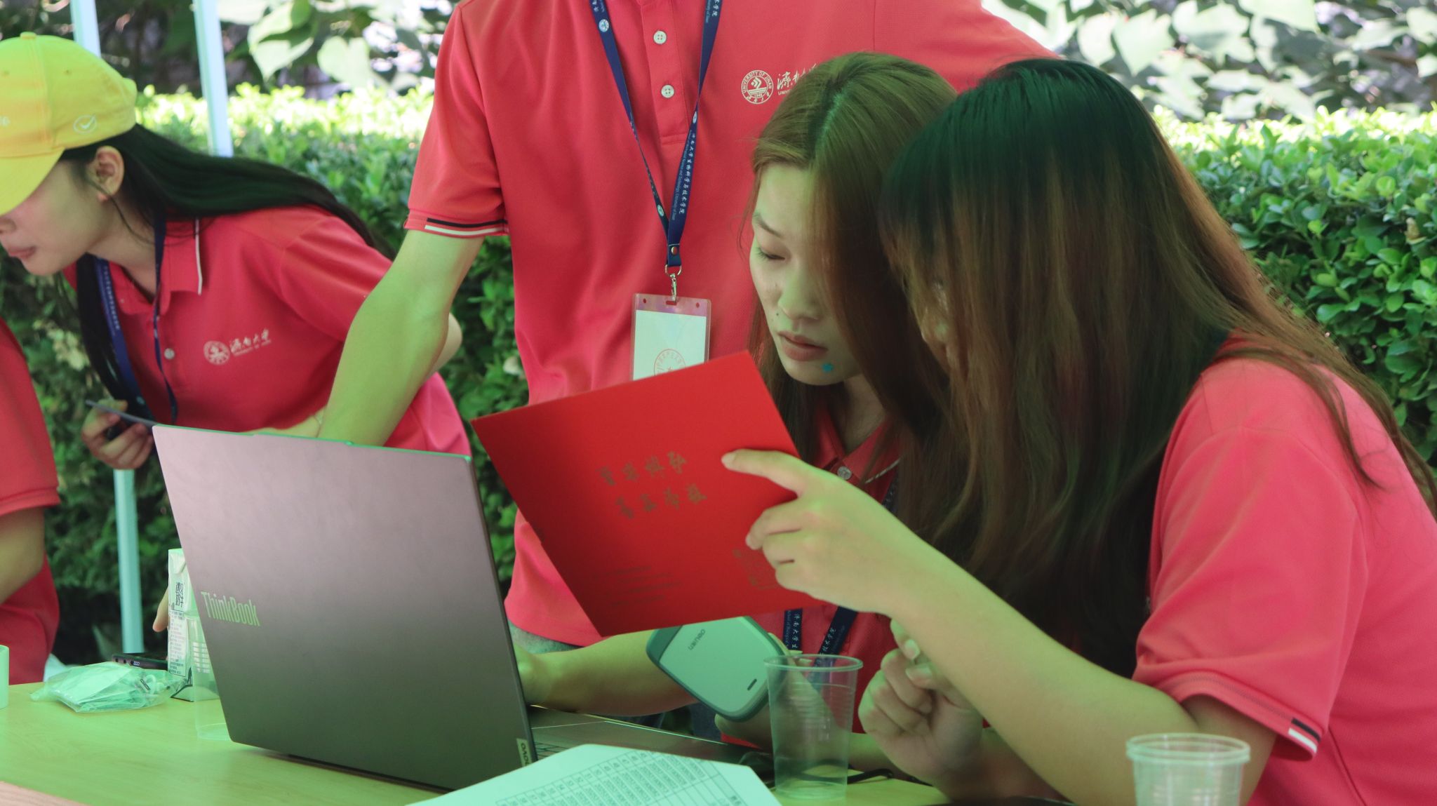 学院精心设计了富有特色的互动展示板,悬挂别具匠心的装饰标语,用心打造了温馨、有序的入学环境,让新生们初入校园就感受到学院的热情与关怀。学院志愿者与班助团队协同完成线上线下的迎新工作,耐心解答疑问,分享经验,引导新生完成缴费审核、身份核对、领取材料等流程,确保为新生提供全方位、全流程的引导与服务。报到流程井然有序、规范高效,赢得了广大新生及家长的一致认可。